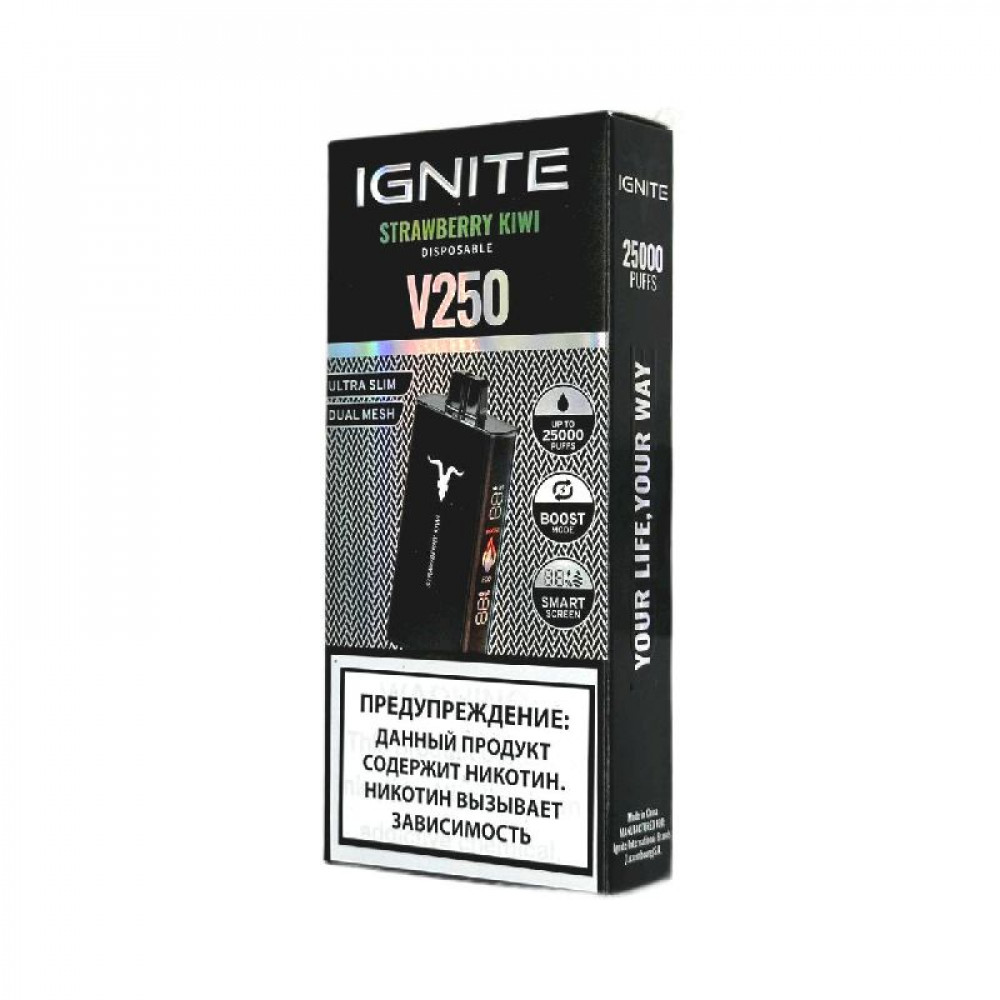 Электронная сигарета Ignite V250 Black 25000 - Strawberry Kiwi (Клубника киви) - купить в Кирсанове