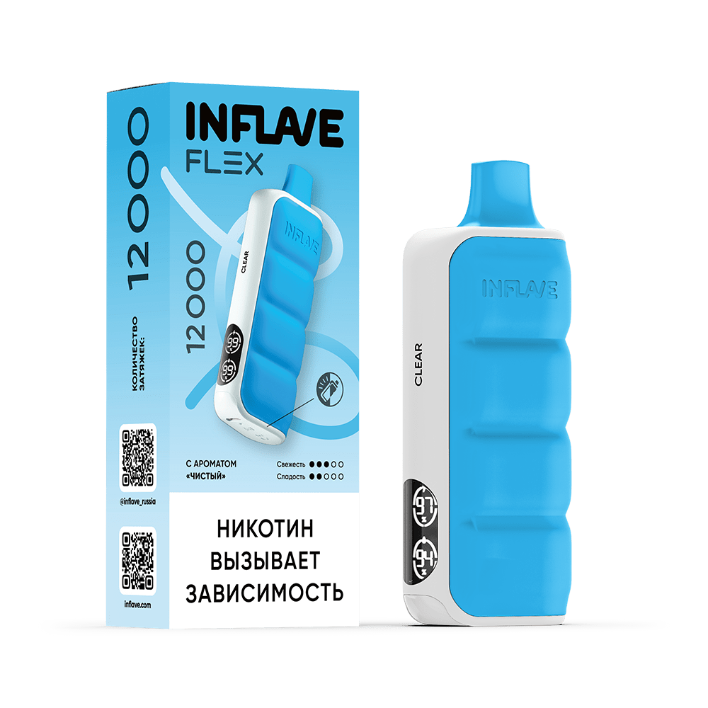 Количество затяжек, шт12000 Крепость, %2 ЛинейкаINFLAVE FLEX 12000